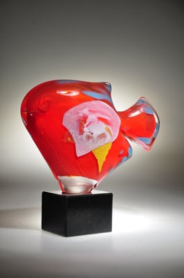Details und weitere Informationen finden Sie in unserem Onlineshop. Die Gefäße und der Fisch sind frei geblasene Überfangarbeiten mit Farbglasapplikationen, die Skulpturen formgeschmolzenes Glas auf Granitsockel.