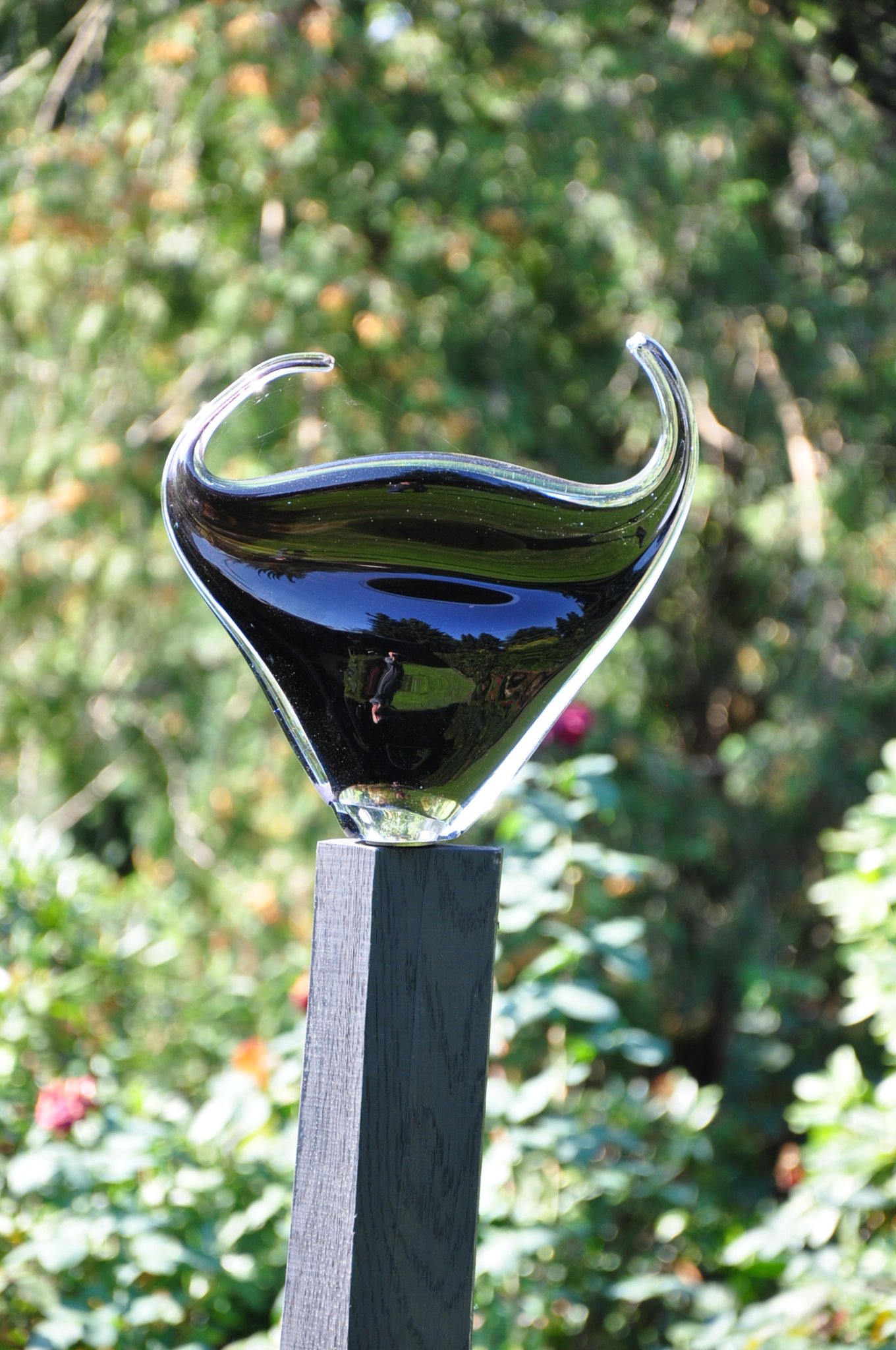 Doch auch einige neue Objekte haben wir noch erhalten. Wenn jetzt die dunklere Jahreszeit beginnt, bringen die Stierköpfe von Franz Winkelkotte und die Wächterfiguren von Heiner Düsterhaus ein wenig Farbe und Funkeln in den Garten.