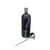 Zylindrischer Flakon aus klarem, teilweise irisiertem Glas mit zwei, entgegengesetzt aufgeschmolzenen orangefarbigen Glastupfen und weißen Glasfäden. Der Stopfen ist aus 925er Silber, punziert, Denmark Scharff. Der Flakon ist signiert: FL 79